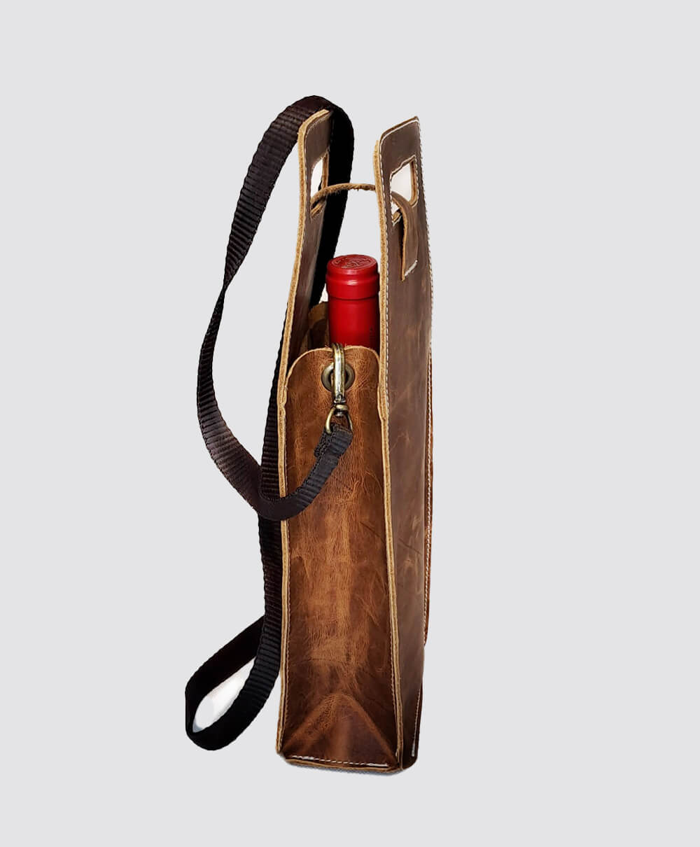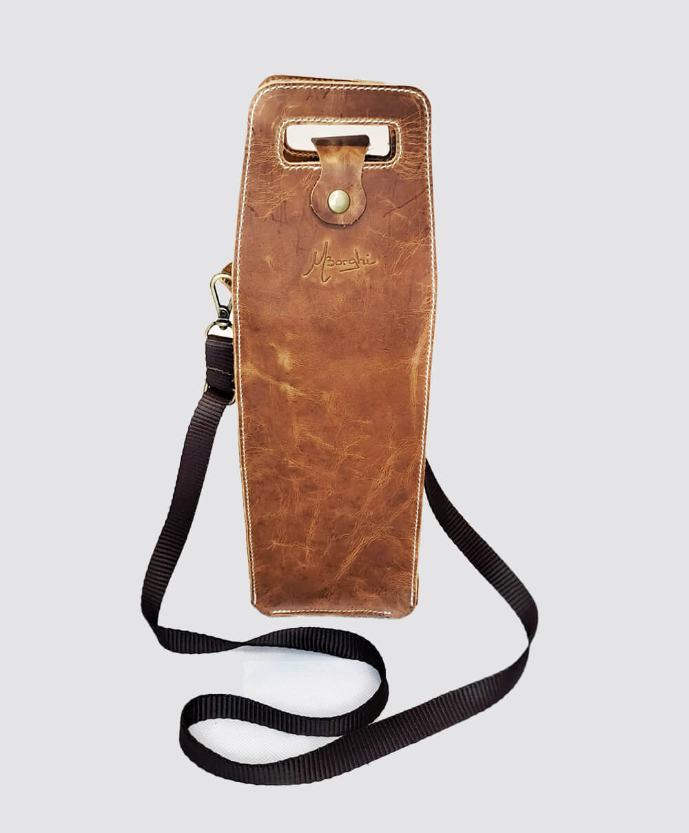 Elegante e com toque rústico, o Porta Vinho é produzido em couro legítimo tipo Crazy Horse — com acabamento estonado que garante charme e personalidade únicos à peça. Com fundo estruturado e revestimento interno com espuma protetora, oferece segurança para transportar sua garrafa com estabilidade e praticidade. Perfeito para ocasiões especiais, piqueniques, jantares ou como presente sofisticado.